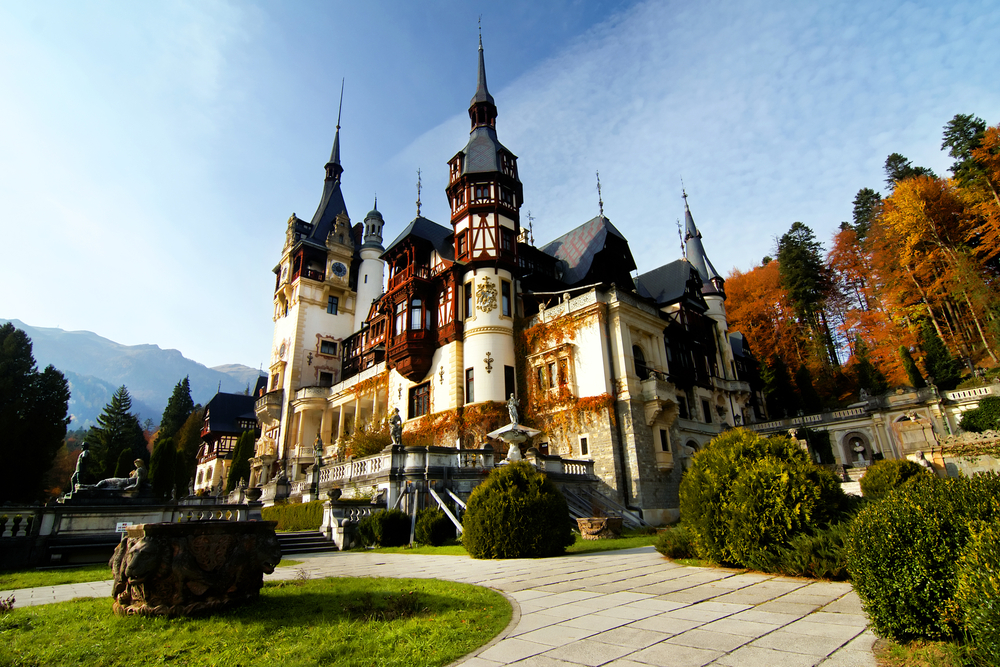 Среди достопримечательностей Румынии особое место занимают ее удивительные замки. Сегодня всех желающих ждёт восхитительный День Двух Замков. Мы посетим великолепную королевскую резиденцию – замок Пелеш – без преувеличения, один из самых впечатляющих дворцов Европы. Удивительная архитектура, разнообразие и богатство интерьера поражают даже искушенного путешественника. При строительстве замка использовались все передовые технологии того времени. Пелеш стал первым замком в мире, где провели электричество и даже установили лифт. Чуть позже, в 1916 году, в замке даже был сделан кинотеатр. В здании 160 комнат и 30 ванных. Везде богатый интерьер: черное дерево, фарфор, кожа из Кордовы, восточные ковры, гобелены, золотая и серебряная посуда, картины, скульптуры, слоновая кость. Люстры в замке преимущественно из дорогого муранского стекла. Окна — из витражного стекла, расписанного вручную мастерами Швейцарии. Часть картин написана Густавом Климтом. Коллекция оружия насчитывает более четырех тысяч экземпляров. Мы заглянем в музыкальный, мавританский, флорентийский, восточный, турецкий залы… И сам замок, и исключительной красоты парковый ансамбль, без сомнения, не оставят никого равнодушным! Замок Кантакузино в соседнем маленьком селении Буштень был построен в 1904 году по велению князя Георге Григоре Кантакузино – крупного землевладельца, мэра Бухареста и премьер министра Румынии. Благороднейшая фамилия Кантакузино ведет свою родословную еще от византийских императоров. Родовое поместье Кантакузино в Буштени — одно из самых романтичных мест Трансильвании. Что делает замок Кантакузино излюбленным местом отдыха среди влюбленных? Давайте начнем с территории замка с очаровательным парком, где есть гроты, водопады и фонтаны. Здание в неорумынском стиле выглядит как иллюстрация из сказки. Сегодня бывшая семейная резиденция Кантакузино находится в списке крупнейших европейских памятников культурного наследия.